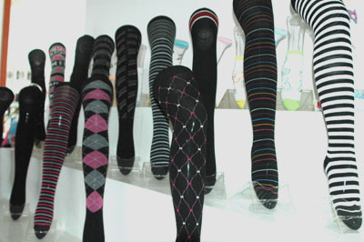 (公司大堂) 浙江东方缘针织有限公司是一家以专业设计、生产和销售袜子起家并获得成功的企业典型。公司老板蔡如东早年在义乌以做袜子销售起步,之后来到大唐创办袜厂,并于2000年注册成立诸暨市东方红针织有限公司。在2007年,公司更名为浙江东方缘针织有限公司,迄今已近10年。 浙江东方缘针织有限公司以设计、生产和销售时装袜为主;产品内销、外销基本平衡,产品目标定位为中高档市场的年轻女性消费群体。同时,公司还加工、生产、销售时装。公司目前共有160余名员工,并拥有专门实验室,负责产品检测等。 如今浙江东方缘针织有限公司虽然仍以外加工销售为主,但款式设计上的出色表现为公司取得了不俗的成绩。因此,公司将继续保持作为时装产品关键的设计方面的创新度。而在色彩、花型上面的设计,公司则已经积累了相当的基础。其余新材料,如植物纤维等,公司也一直在关注、使用。“关键是轻薄,柔软,而且保暖效果好。”朱小姐这样对记者说。